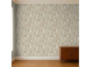 Geometrijska flis tapeta s vinilnom površinom – izmjena nježnog polusjaja i mata, glatkih i strukturiranih površina, nijanse bež i smeđe.