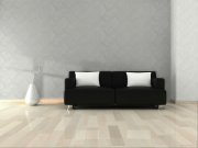 Luksuzna flis tapeta za zid. Motivi listova u nijansama sive i bijele na strukturiranoj flis tapeti s vinilnom površinom. Fotografija interijera je samo ilustrativna.