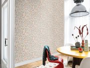 Flis tapete s vinilnom površinom, cvjetni uzorak u nijansama bež, ružičaste i zelene, nježna vlaknasta tekstura. Veličina role 1,06 x 10 m.