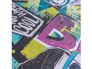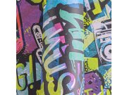 A.S. Création | Dječja flis zidna tapeta Lilly a Luis 77142-1 | 771421 | 0,53 x 10,05 m | crna, Bijela, žlutá, zelena, Plava, Tirkizna, Crvena, růžová, Ljubičasta, oranžová, višebarevnáMaterijal: Flis