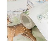 A.S. Création | Dječja flis zidna tapeta Lilly a Luis 77172-1 | 771721 | 0,53 x 10,05 m | Bijela, Krem, Bež, Smeđa, Siva, zelena, Plava, oranžováMaterijal: Flis