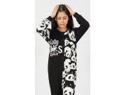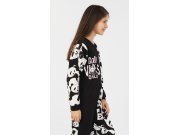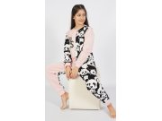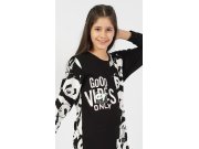 Dječji pamučni kombinezon Good vibes only. Kombinezon se zakopčava cijelom dužinom – s jedne stranicae ukrašen je slikom pande i natpisom Good vibes only, a s druge stranicae ima cjeloplošni uzorak s pandama. Duge nogavice završavaju elastičnim rubovima. Pamučni materijal je mekan i ugodan na dodir.