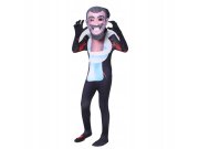 Kostim se sastoji od pripijene kombinezone s dugim rukavima i nogavicama, ukrašene izraženim grafičkim uzorkom. Pripijeni kroj osigurava maksimalnu udobnost i slobodu kretanja, pa djeca u ovom kostimu mogu lako trčati, plesati ili se igrati. Glavni dio kostima je ikonična maska sa širokim osmijehom, koja savršeno odražava izgled lika iz "Skibidi Toilet". Maska je lagana i jednostavna za nošenje, što je čini ugodnom čak i za dulje korištenje.
