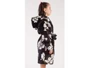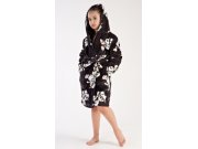 Dječji soft ogrtač s kapuljačom Ovečka. Dječji ogrtač s kapuljačom, pojasom za vezanje i džepovima prikladan je nakon kupanja ili za izležavanje kod kuće na kauču. Na tamno sivoj tkanini ogrtača otisnute su bijele ovčice. Korišteni soft materijal je nježan, mekan i podatak na dodir.