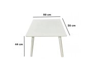 Stol i stolice izrađeni su od kvalitetnog i sigurnog drvenog materijala s glatkom površinskom obradom. Robusna konstrukcija osigurava stabilnost i izdržljivost na svakodnevnu uporabu. Površina stola lako se čisti, što će roditelji cijeniti prilikom čišćenja nakon kreativnih aktivnosti poput crtanja ili modeliranja.