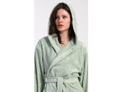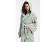 Dugi ženski frotirni ogrtač s kapuljačom Menta.