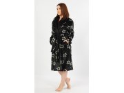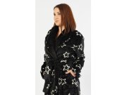 Dugi ženski ogrtač Stars. Topli ženski ogrtač u tamnoj boji ukrašen je obrisima zvijezda. Ogrtač ima šal ovratnik, pojas za vezanje i praktične džepove. Korišteni soft materijal je nježan i podatak na dodir.