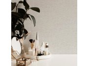 Luksuzna krem-bijela netkana tapeta na zidu, imitacija tkanine, ponegdje sitne srebrne čestice. Veličina role š. 106 cm x d. 1000 cm.