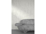 Veličina tepete 0,53x10m. Flis tapeta, imitacija sivo-bijele tkanine, utisnute glatke srebrne grančice.