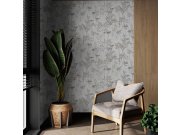 Flis tapeta s vinilnom površinom, bijela štuk podloga, motivi livadskih trava i listova u nijansama sive, mjestimično metalno srebrne.