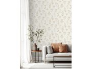 Flis tapeta za zid, motivi listova u sivim i smešnim nijansama, zmajevi i zlatne trave. Nježna grublja tekstura.