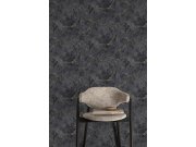 Flis tapeta s vinilnom površinom, uzorak mramora u nijansama sivo-crne, polusjajne zlatne mramorne linije, fina tekstura.