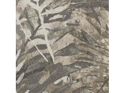 Bijela flis tapeta za zid, motivi listova u nijansama oker, zelene, tirkizne i smeđe-crvene. Tkaninska tekstura.