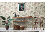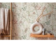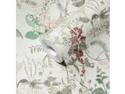 Flis tapet na zid, motivi cvijeća u nijansama zelene, tirkizne, opečnato crvene i bež. Nježna grublja tekstura.