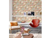 Flis tapeta s vinilnom površinom, motiv šarenog cvijeća, nijanse narančaste, ljubičaste, crvene i zelene, nježna tekstura. Što će vas oduševiti: visoka otpornost i perivost. Dizajn: prirodni.
