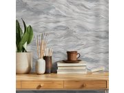 Tapeta sa vinilnom površinom, dekor mermera u nijansama sive, sivo-plave, mestimično sa srebrnim polusjajem. Veličina role š. 106 cm x d. 1000 cm.