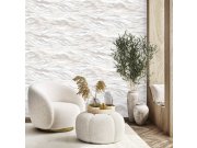 Geometrijska netkana tapeta s vinilnom površinom, efekat izmjene tekstura, nijanse krem i sivo-krem, glatki srebrni obrisi. Veličina role š. 106 cm x d. 1000 cm.