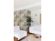 Flis tapeta za zid sivo-bež listovi A69002 | Ljepilo gratis