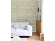 Flis tapeta s vinilnom površinom, stilizirani listovi u sivo-zelenim nijansama, tekstura tkanine.