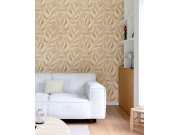 Flis tapeta s vinilnom površinom, stilizirani listovi u smeđe-bež nijansama, tekstura tkanine.