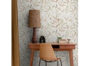 Flis tapeta s vinilnom površinom, motiv livadnih trava i ptičica na svijetlo bež podlozi, zrnasta tekstura. Što će vas oduševiti: visoka otpornost i perivost. Dizajn: prirodni.
