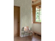 Flis tapeta s vinilnom površinom, bijela štuk podloga, motivi livadskih trava i listova u nijansama zelene i metalno zlatne.