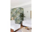 Flis tapeta s vinilnom površinom, krem podloga, motiv stabala u nijansama zelene i smeđe, fina tekstura.