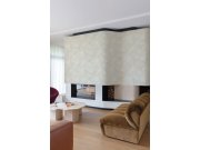Veličina tepete 0,53x10m. Plastična, sivo-bež flis tapeta za zid, geometrijski uzorak, zlatne linije tvore kvadrate.