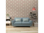 Geometrijska flis tapeta s vinilnom površinom – izmjena nježnog sjaja i mata, glatkih i strukturiranih površina, nijanse ružičaste, smeđe i bež.