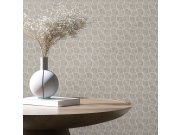 Geometrijska netkana tapeta s vinilnom površinom, efekat izmjene tekstura, nijanse krem i sivo-krem, glatki srebrni obrisi. Veličina role š. 106 cm x d. 1000 cm.