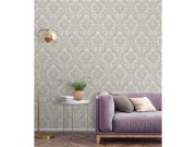 Polusjajna sivo-bež klasična flis tapeta s vinilnom površinom, imitacija fine tekstilije, damast uzorak.
