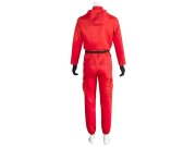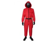 Ovaj kostim je vjerna replika uniforme koju nose čuvari zaduženi za nadzor tijeka igara. Crveni kombinezon s kapuljačom i crna maska s geometrijskim simbolom prepoznatljivi su elementi koje će svaki obožavatelj odmah prepoznati. Pripremite se na to da ćete u ovoj odjeći djelovati ne samo tajanstveno nego i opasno autoritativno.