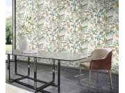 Luksuzna flis tapeta s vinilnom površinom, podloga grublje krem tkanine, bogat cvjetni uzorak u raznolikim bojama.