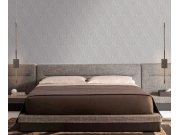 Luksuzna flis tapeta s vinilnom površinom, geometrijski uzorak u stilu Art deco, nijanse polusjajne sive boje, sjenčanje stvara prostorni efekt.