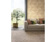 Luksuzna flis tapeta s vinilnom površinom, plastični motivi listova u nijansama polusjajne sivo-bež boje, grublja tekstura tkanine. Fotografija interijera je samo ilustrativna – moguća odstupanja u boji.