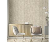 Luksuzna sivo-bež flis tapeta s reljefnim krem prugama na podlozi koja imitira štukaturu.