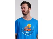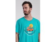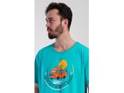 Muška pamučna noćna košulja s kratkim rukavima Adventure. Jednobojna muška noćna košulja s okruglim izrezom i duljinom do koljena ima na prsima sliku kampera i natpis Good days bring big waves. Noćna košulja je prikladan poklon za sve ljubitelje putovanja. Korišteni materijal s udjelom pamuka 100% je ugodan i mekan na dodir.