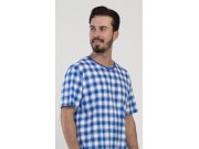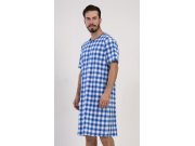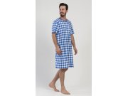 Muška noćna košulja s kratkim rukavima Karel. Muška noćna košulja s kratkim rukavima namijenjena je svim ljubiteljima udobnosti. Košulja je ukrašena uzorkom kocke. Korišteni materijal je nježan i mekan na dodir. Sadržaj pamuka je 100%.