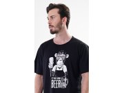 Muška pamučna noćna košulja s kratkim rukavima Majmun. Muška noćna košulja za sve ljubitelje udobnosti s motivom čimpanze - barmena s pivom. Korišteni pamučni materijal je ugodan i mekan na dodir.