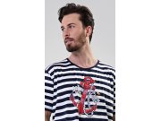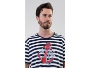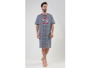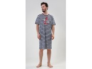 Muška pamučna noćna košulja s kratkim rukavima Sidro. Muška noćna košulja za sve ljubitelje udobnosti ima na prugastoj podlozi upečatljivu sliku sidra. Korišteni pamučni materijal je ugodan i mekan na dodir.