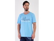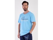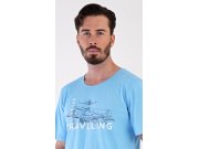 Muška pamučna pidžama bermude Avion. Muška pidžama sastoji se od majice s kratkim rukavima i hlača iznad koljena. Jednobojnu majicu krasi slika aviona. Hlače imaju u struku gumu, vezicu za stezanje i praktične džepove. Korišteni materijal je nježan i podatak na dodir. Udio pamuka u majici i hlačama je 100%.