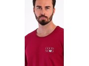 Muška duga pamučna pidžama Good mood. Muška pidžama sastoji se od majice s dugim rukavima i dugih hlača. Majicu s okruglim izrezom na prsima krasi mala slika i natpis GOOD MOOD. Karirane hlače imaju u struku gumu, vezicu za stezanje i praktične džepove. Korišteni materijal INTERLOK sa 100% udjelom pamuka je podatna i ugodna na dodir.