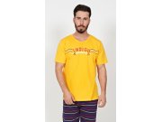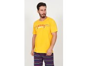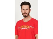 Muška pamučna kapri pidžama Indigo. Muška pidžama sastoji se od majice s kratkim rukavima i hlača tri četvrtine. Na jednobojnoj majici nalazi se natpis Indigo rebels. Majicu prikladno nadopunjuju jednobojne hlače ispod koljena, koje u struku imaju gumu, vezicu za stezanje i praktične džepove. Korišteni materijal s udjelom pamuka 100% je ugodan i mekan na dodir.
