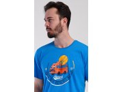Muška pamučna pidžama s kratkim hlačama Adventure. Muška pidžama sastoji se od majice s kratkim rukavima i kratkih hlača. Na majici je slika kampera i natpis Good days bring big waves. Majicu upotpunjuju karirane kratke hlače koje u struku imaju gumu, vezicu za stezanje i praktične džepove. Korišteni materijal sadrži 100% pamuk, ugodan je i mekan na dodir.