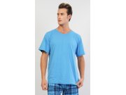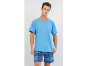 Muška pamučna pidžama kratke hlače Jiří. Muška pidžama sastoji se od majice s kratkim rukavima i kratkih hlača. Jednobojnu majicu s okruglim izrezom prikladno nadopunjuju karirane hlače u ugodnim prigušenim bojama. Hlače su bez džepova, imaju gumu i vezicu za stezanje. Korišteni materijal s udjelom pamuka 100% je ugodan i mekan na dodir.