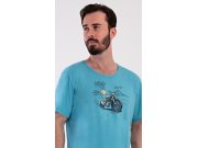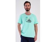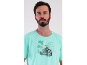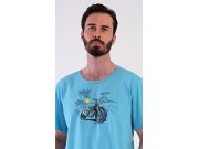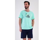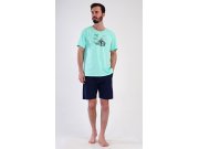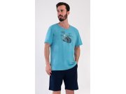 Muška pamučna pidžama s kratkim hlačama Pavel. Muška pidžama sastoji se od majice s kratkim rukavima i kratkih hlača. Na jednobojnoj majici nalazi se slika terenskog motora. Kratke hlače imaju praktične džepove, u struku gumu i vezicu za stezanje. Korišteni materijal s udjelom pamuka 100% je ugodan i mekan na dodir. Pidžama je pogodna i za svakodnevno nošenje, a posebno će vam odgovarati u vrućim ljetnim danima.