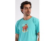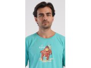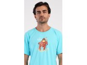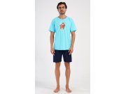 Muška pamučna pidžama s kratkim hlačama Relax. Muška pidžama sastoji se od majice s kratkim rukavima i kratkih hlača. Na jednobojnoj majici nalazi se slika majmuna koji se opušta na plaži s pićem. Hlače imaju praktične džepove, elastičnu pasicu i vezicu za stezanje. Korišteni materijal s udjelom pamuka 100% je ugodan i mekan na dodir. Pidžama je pogodna i za svakodnevno nošenje, a posebno ćete je cijeniti u vrućim ljetnim danima.
