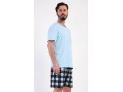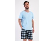 Muška pamučna pidžama s kratkim hlačama Vašek. Muška pidžama sastoji se od majice s kratkim rukavima i kratkih hlača. Jednobojna majica ima okrugli izrez i prikladna je za sve ljubitelje udobne mode bez otiska. Majicu nadopunjuju karirane kratke hlače koje u struku imaju gumu, vezicu za stezanje i praktične džepove. Korišteni materijal od 100% pamuka je ugodan i mekan na dodir.