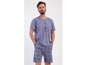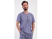 Muška pamučna pidžama sa šorcem Earth. Muška pidžama se sastoji od majice s kratkim rukavima i kratkih šorceva. Jednobojna majica ima okrugli izrez i na prsima je ukrašena slikom s motivom svemira. Majicu upotpunjuju karirani šorcevi koji u struku imaju gumu, vezicu za zatezanje i praktične džepove. Korišteni materijal sa 100% udjelom pamuka je ugodan i mekan na dodir.