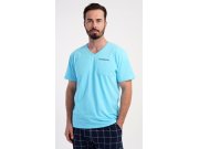 Muška pamučna pidžama sa šorcevima Freedom. Muška pidžama sastoji se od majice s kratkim rukavima i kratkih šorceva. Majicu s okruglim izrezom na prsima krasi mali natpis FREEDOM. Majicu upotpunjuju karirani šorcevi koji u struku imaju gumu, vezicu za stezanje i praktične džepove. Korišteni materijal sa 100% udjelom pamuka je ugodan i mekan na dodir.